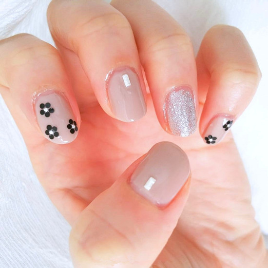 采用的裸色做主色調,配合小花和銀色閃粉甲作為輔助設計,非常好看的一款喲~