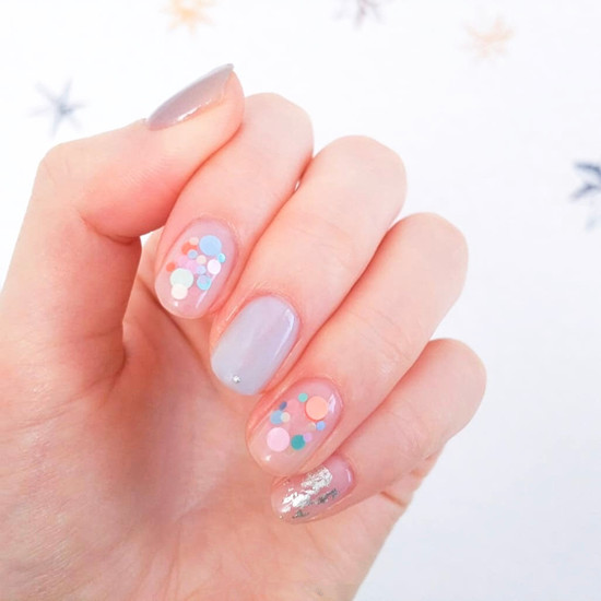 滿足了妹子們的少女心喲~采用了不同顏色的圓片,配合銀色暈染,超級好看了喲~